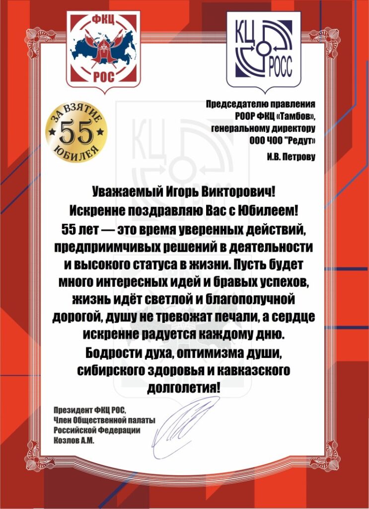 Поздравляем с Юбилеем председателя правления РООР ФКЦ “Тамбов”!